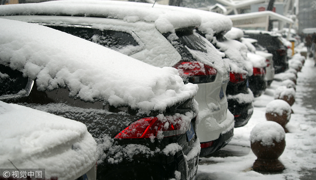 10月18日,烏魯木齊市民在清理車上的積雪。當日,新疆烏魯木齊迎來一場降雪。 新華社記者 江文耀 攝