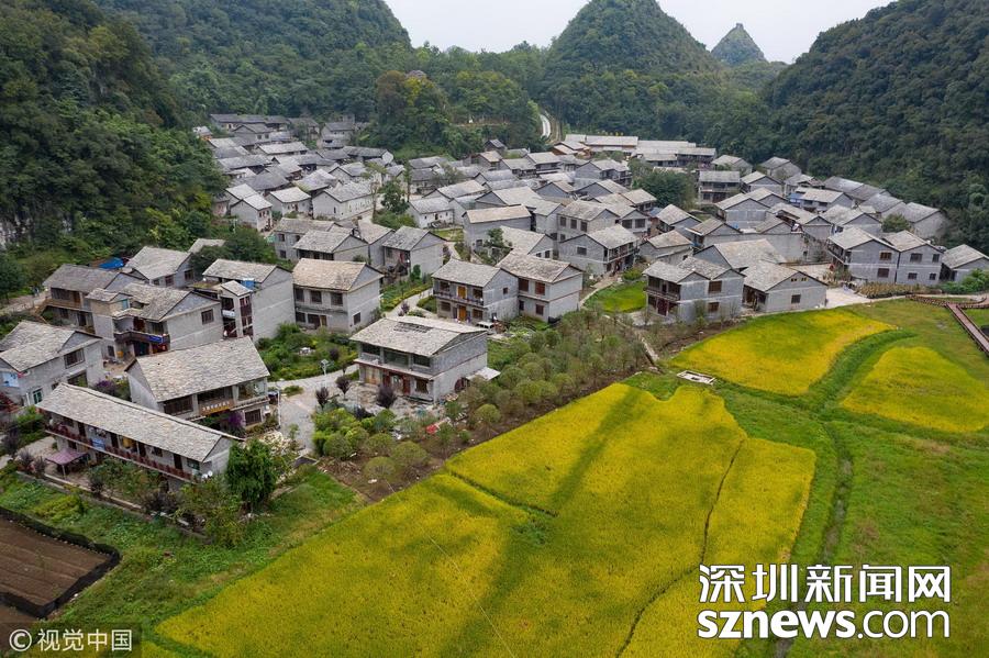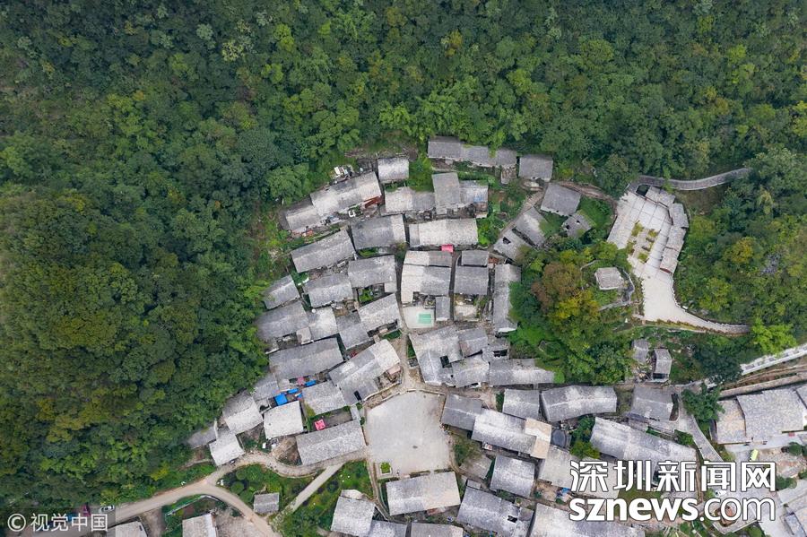 深圳新聞網(wǎng)訊 2018年9月27日,貴州安順,航拍坐落在群山中的鎮(zhèn)寧布依族苗族自治縣高蕩村。鎮(zhèn)寧高蕩村民居為石木結(jié)構(gòu)干欄式石板房,建造時(shí)間五、六十年至數(shù)百年不等,建筑保存基本完好。