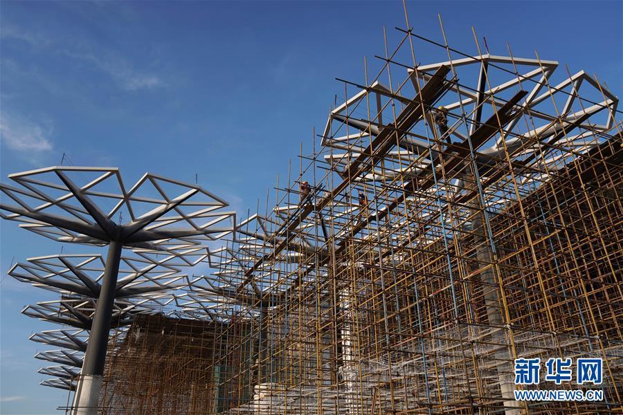 10月18日拍攝的建設中的北京世園會國際館。新華社記者 鞠煥宗 攝