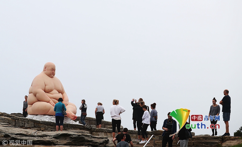 慎點!澳大利亞邦迪海灘雕塑展一幕