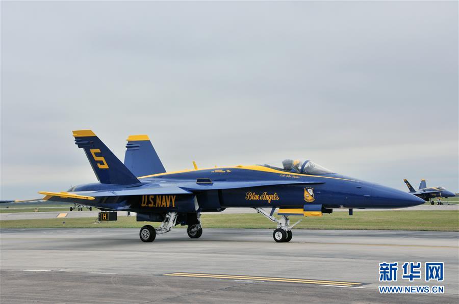 10月20日,在美國(guó)休斯敦,一架美國(guó)海軍“藍(lán)天使”飛行表演隊(duì)的飛機(jī)準(zhǔn)備起飛。