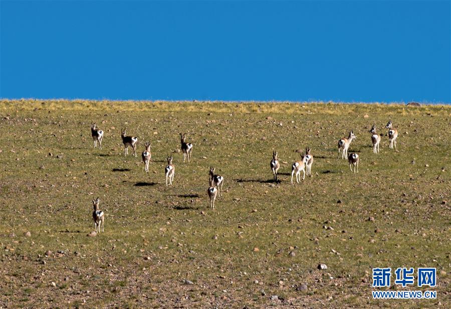 在西藏阿里地區(qū)境內拍攝的國家二級保護動物藏原羚(9月19日攝) 阿里地處西藏西部,平均海拔4500米以上,面積30多萬平方公里,羌塘國家級自然保護區(qū)幾乎涵蓋整個阿里地區(qū),是眾多野生動物生活的樂園。 新華社記者 旦增尼瑪曲珠 攝