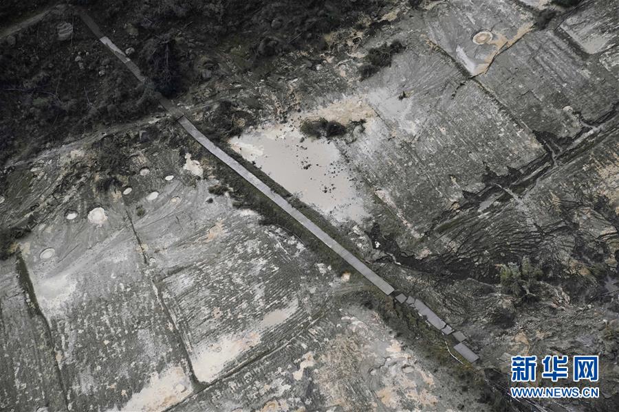 空中俯瞰通往加拉村已淹沒的公路(10月18日攝)。 新華社記者 普布扎西攝