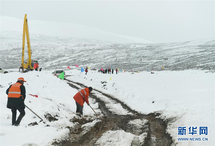 西藏道路搶通人員在西藏昌都市江達(dá)縣海拔4500米左右的高山牧場上搶通道路(10月14日攝)。新華社記者劉東君攝