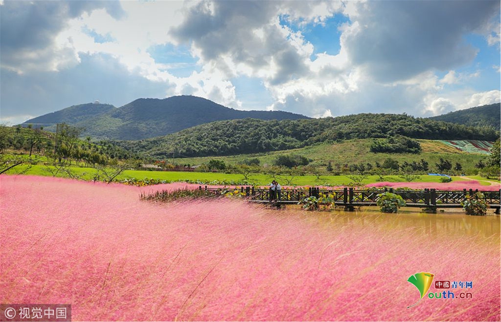 當(dāng)游客來(lái)到這里,立刻被眼前的一片浪漫的粉色所吸引。只見半人高的粉黛亂子草,縹緲如輕煙,搖曳似夢(mèng)幻,伴著微風(fēng)掀起了一陣陣的波浪。