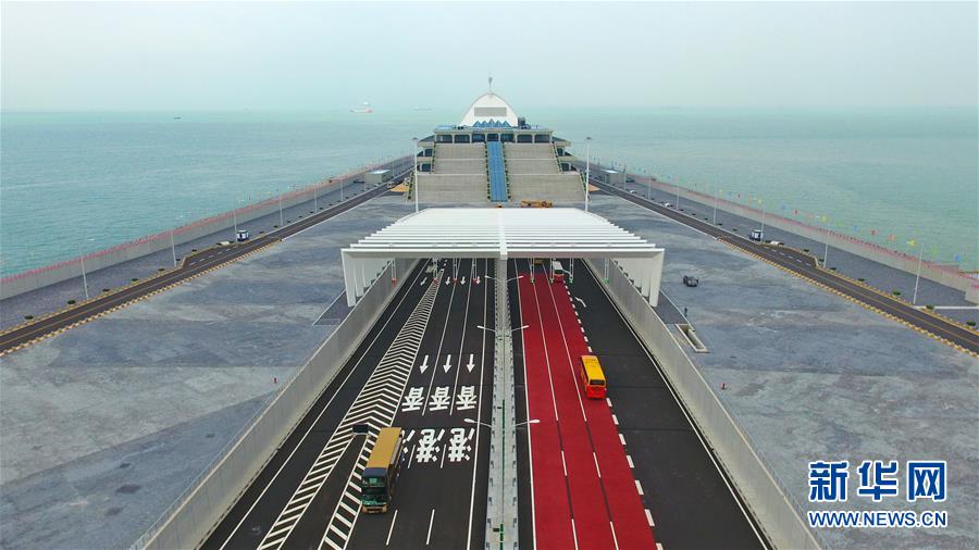 港珠澳大橋西人工島隧道口(2018年10月20日攝)。 金秋十月,伶仃洋上海天一色、潮聲陣陣,依傍著這片中國(guó)南海水域的城市群迎來(lái)深具意義的一天。 10月23日上午,港珠澳大橋開通儀式在廣東珠海舉行,中共中央總書記、國(guó)家主席、中央軍委主席習(xí)近平出席儀式,宣布大橋正式開通。 碧波之上,一橋飛架香港、澳門、珠海三地,以氣貫長(zhǎng)虹的“中國(guó)跨度”,飛越滄海百年的歷史風(fēng)云,展現(xiàn)當(dāng)代中國(guó)的雄健風(fēng)采。 新華社記者梁旭攝