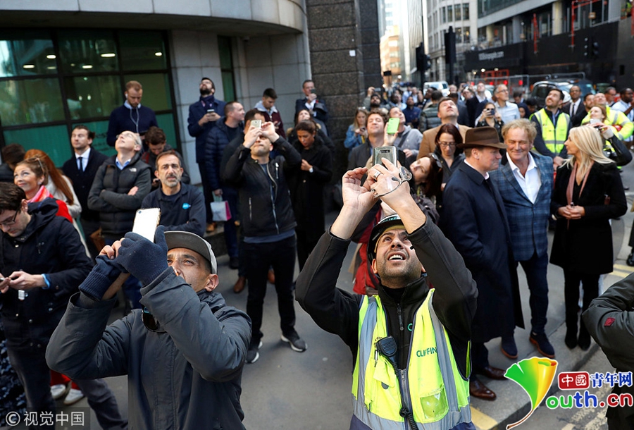 當?shù)貢r間2018年10月25日,英國倫敦,號稱“蜘蛛人”的法國攀樓者阿蘭·羅伯特嘗試攀登高230米的倫敦高樓赫倫大廈。