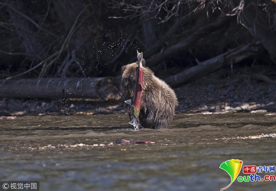 鮭魚看起來(lái)比小棕熊還“大”。