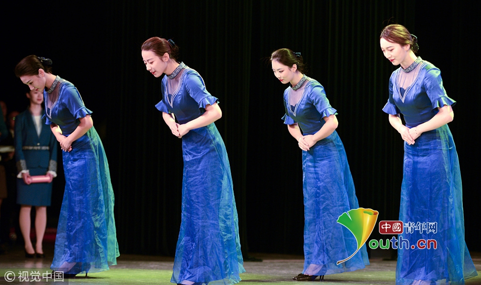 2014年11月17日,世界互聯(lián)網(wǎng)大會直播演練在浙江烏鎮(zhèn)舉行。來自浙江傳媒學(xué)院的大學(xué)生們,身著一襲青花瓷紋旗袍亮相,顯得分外嫵媚,引人注目。