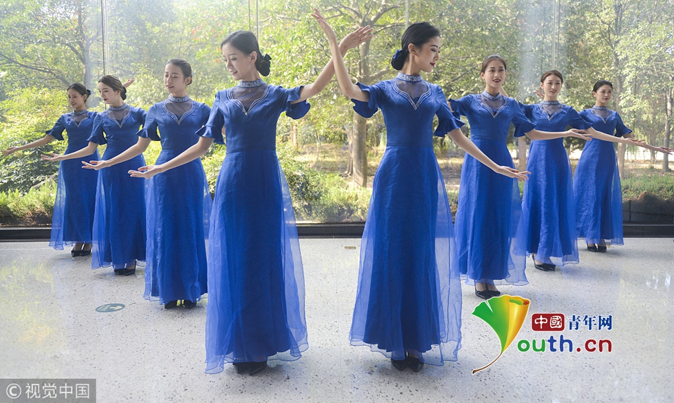 來自浙江傳媒學(xué)院的禮儀志愿者們正在進行緊張有序的集中訓(xùn)練。圖片作者:浙江日報 馮賀/視覺中國
