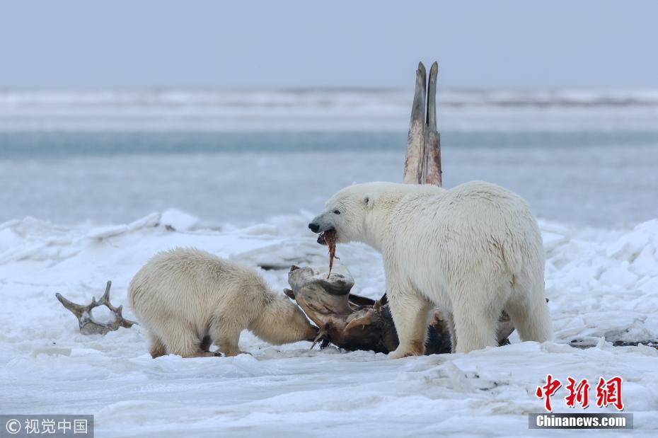11月1日訊(具體拍攝時(shí)間不詳),美國阿拉斯加州,一只北極熊媽媽帶著幼崽們外出覓食,發(fā)現(xiàn)了一節(jié)長4.5米的北極露脊鯨骸骨。75噸重的鯨魚對因紐皮亞特人來說是神圣的,他們每年要吃三次鯨魚,把骨頭放在指定的地方,讓北極熊吃完粘在骨頭上的碎肉。攝影師Eiji Itoyama為拍攝此照片在位于北冰洋邊緣的阿拉斯加卡克托維克村停留了5天。圖片來源:視覺中國