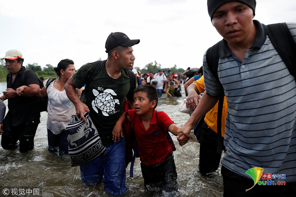 當地時間2018年11月2日,墨西哥與危地馬拉邊界,中美洲移民繼續(xù)向美國挺進。圖片作者:CARLOS GARCIA RAWLINS