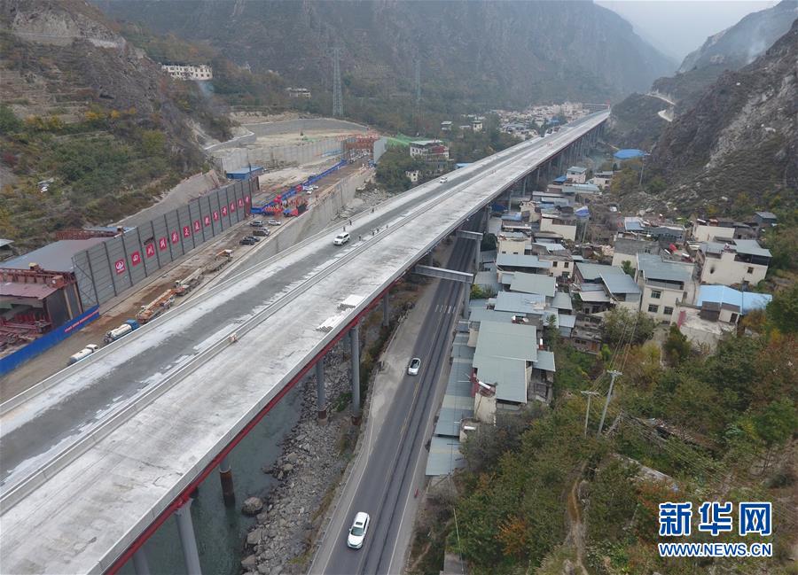 這是11月3日無人機(jī)拍攝的克枯大橋。 當(dāng)日,位于四川省阿壩藏族羌族自治州的汶(川)馬(爾康)高速的控制性工程克枯大橋合龍。 新華社記者 劉坤 攝