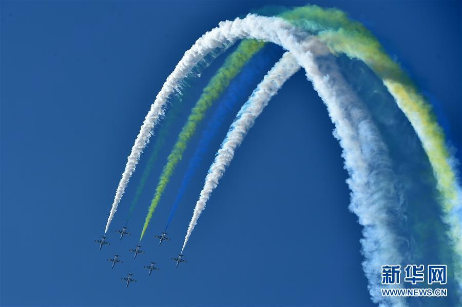 11月6日,空軍航空大學“紅鷹”飛行表演隊在航展現(xiàn)場進行飛行表演。當日,第十二屆中國國際航空航天博覽會在珠海開幕。新華社記者梁旭攝
