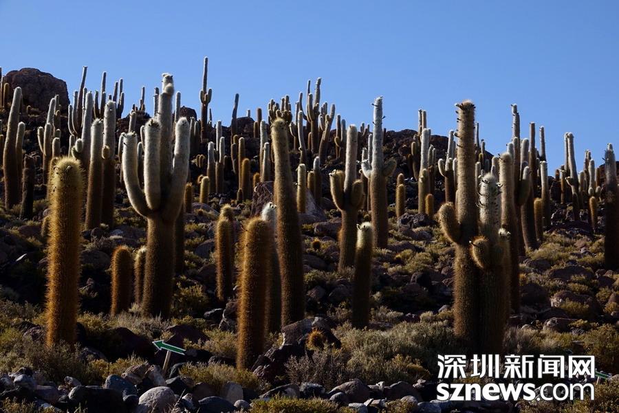 深圳新聞網訊 烏尤尼鹽沼中,有一個孤立的小山頭,猶如瀚海中的小島。島上長滿巨大的仙人柱,據(jù)說有的已經生長了上千年。這種形狀各異、耐鹽堿、耐干旱的熱帶植物豐富了鹽沼的風光,構成絕無僅有的世界奇觀。 李仁奇 攝