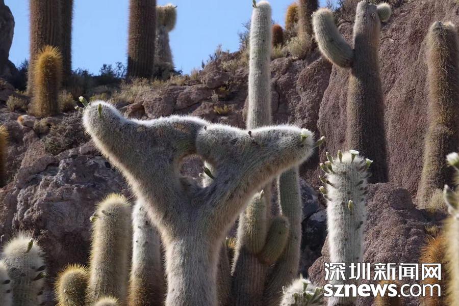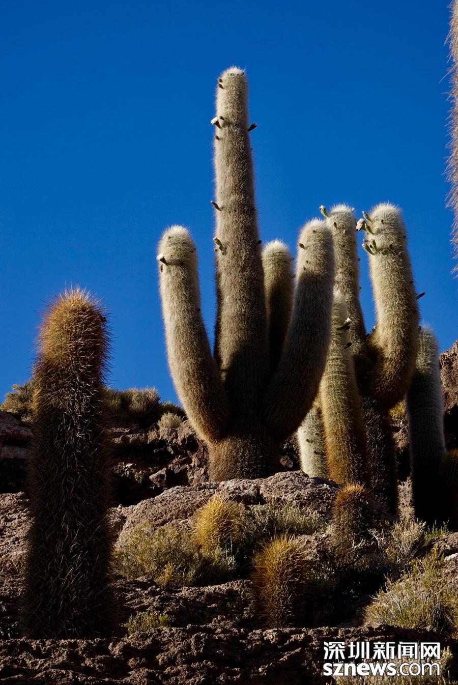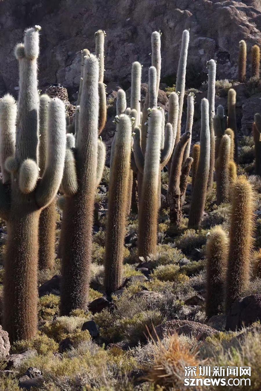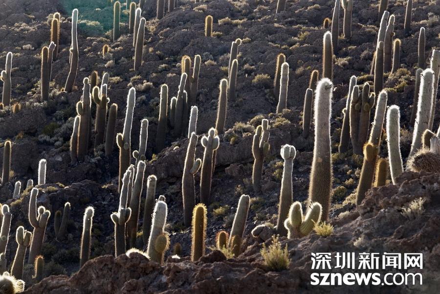 深圳新聞網(wǎng)訊 烏尤尼鹽沼中,有一個孤立的小山頭,猶如瀚海中的小島。島上長滿巨大的仙人柱,據(jù)說有的已經生長了上千年。這種形狀各異、耐鹽堿、耐干旱的熱帶植物豐富了鹽沼的風光,構成絕無僅有的世界奇觀。 李仁奇 攝