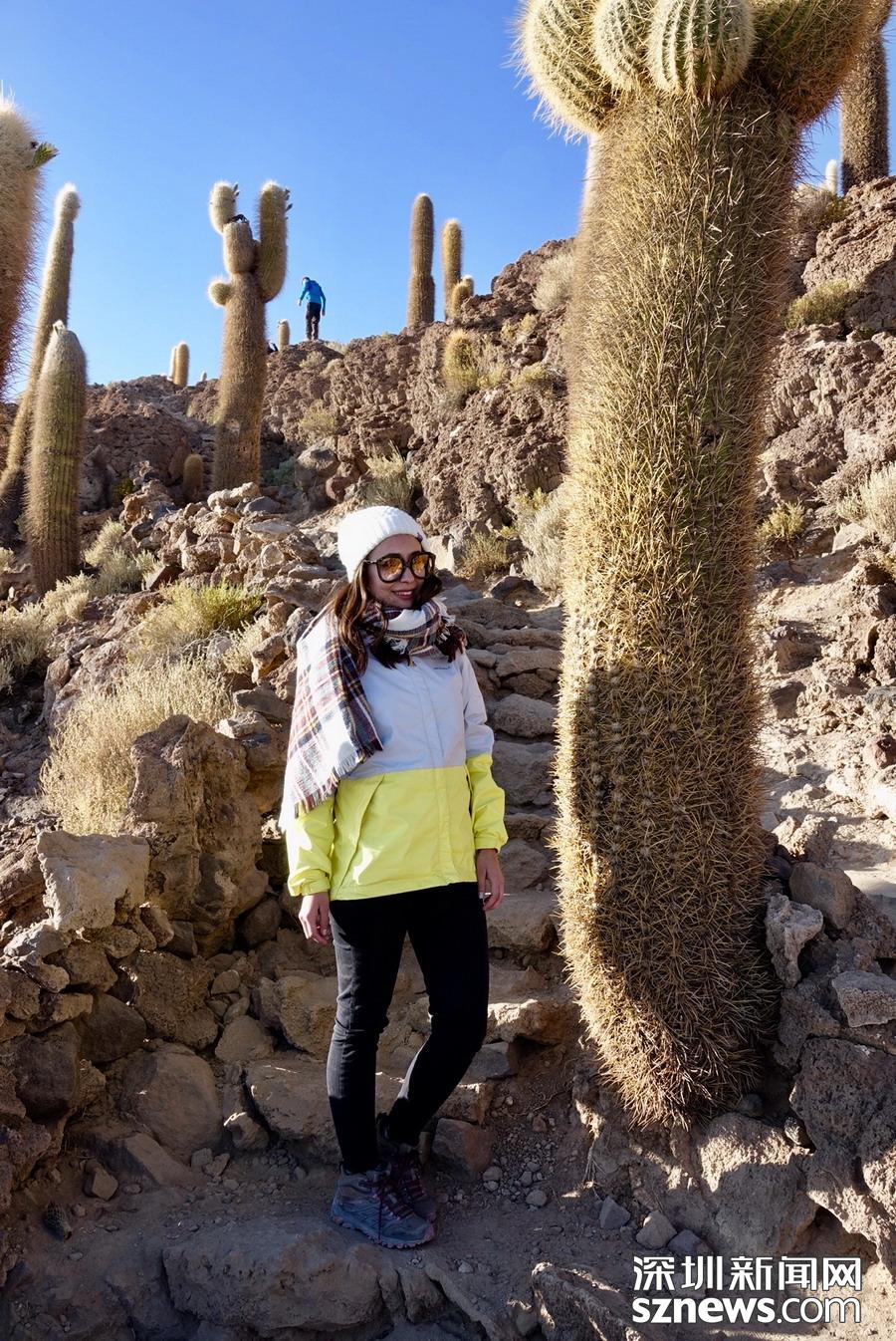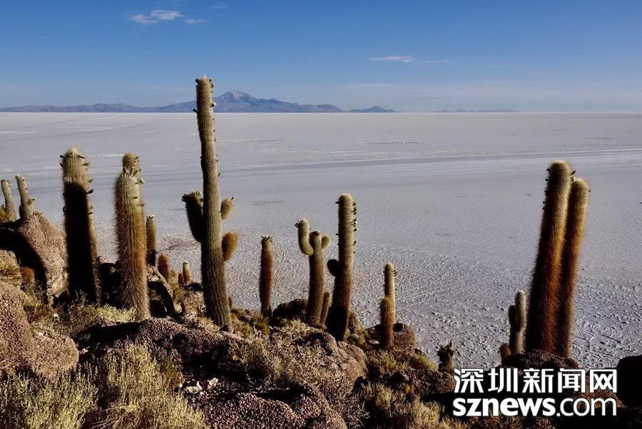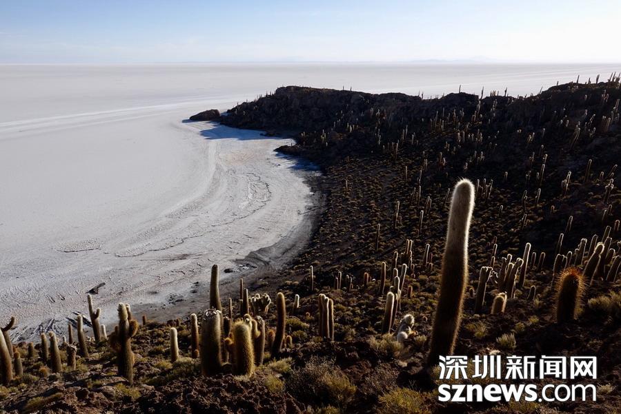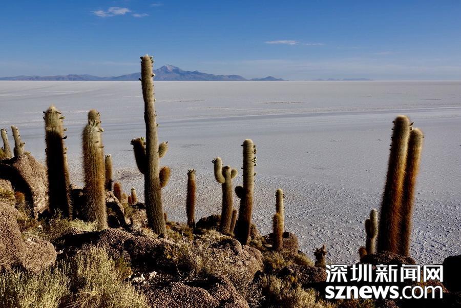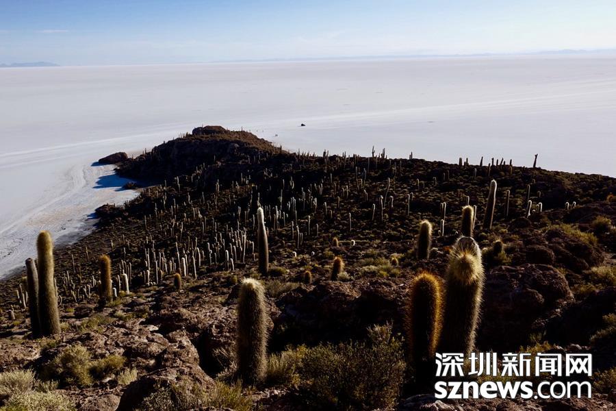 深圳新聞網(wǎng)訊 烏尤尼鹽沼中,有一個孤立的小山頭,猶如瀚海中的小島。島上長滿巨大的仙人柱,據(jù)說有的已經生長了上千年。這種形狀各異、耐鹽堿、耐干旱的熱帶植物豐富了鹽沼的風光,構成絕無僅有的世界奇觀。 李仁奇 攝