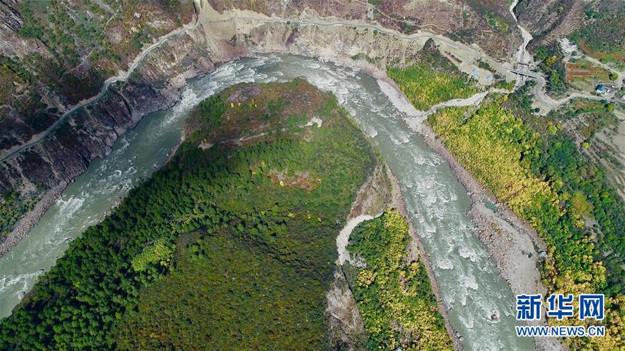 空中俯瞰通往加拉村已淹沒(méi)的公路(10月18日攝)。 新華社記者 普布扎西攝