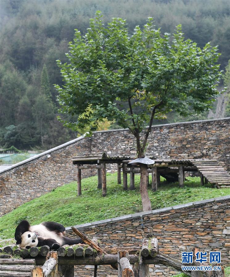 這是在中國大熊貓保護研究中心雅安碧峰峽基地拍攝的大熊貓(2017年10月13日攝)。