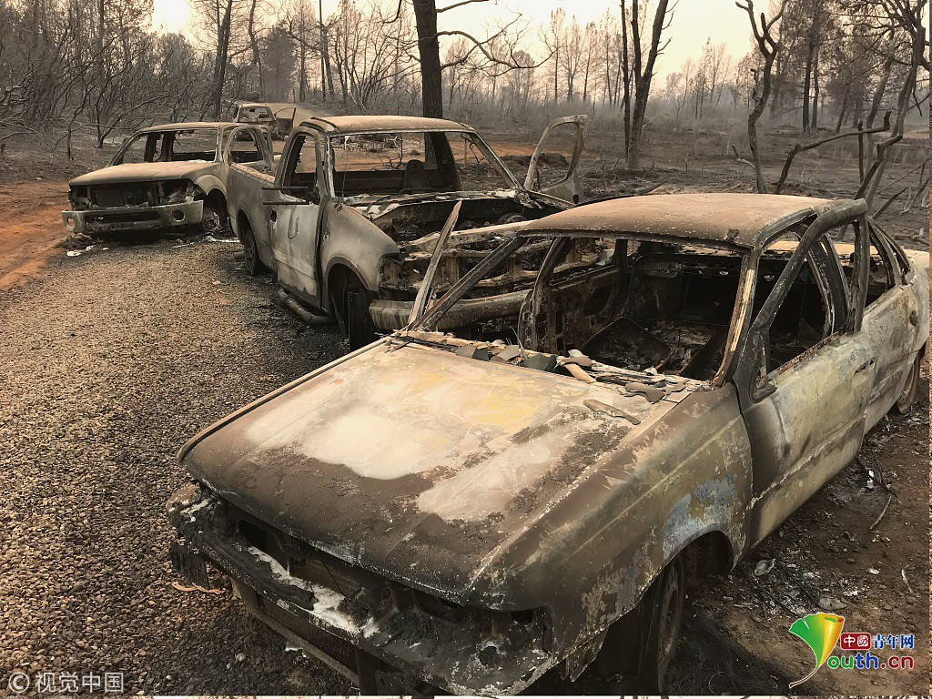 自本周三開始,加州多地發(fā)生山火,火勢蔓延迅猛,數(shù)萬人被迫撤離,數(shù)以萬計的房屋被燒毀。截至當?shù)貢r間11日,全州內(nèi)的多起山火已致總計31人遇難,其中北部的“坎普”山火導(dǎo)致29人死亡。圖片作者:Jessica Christian