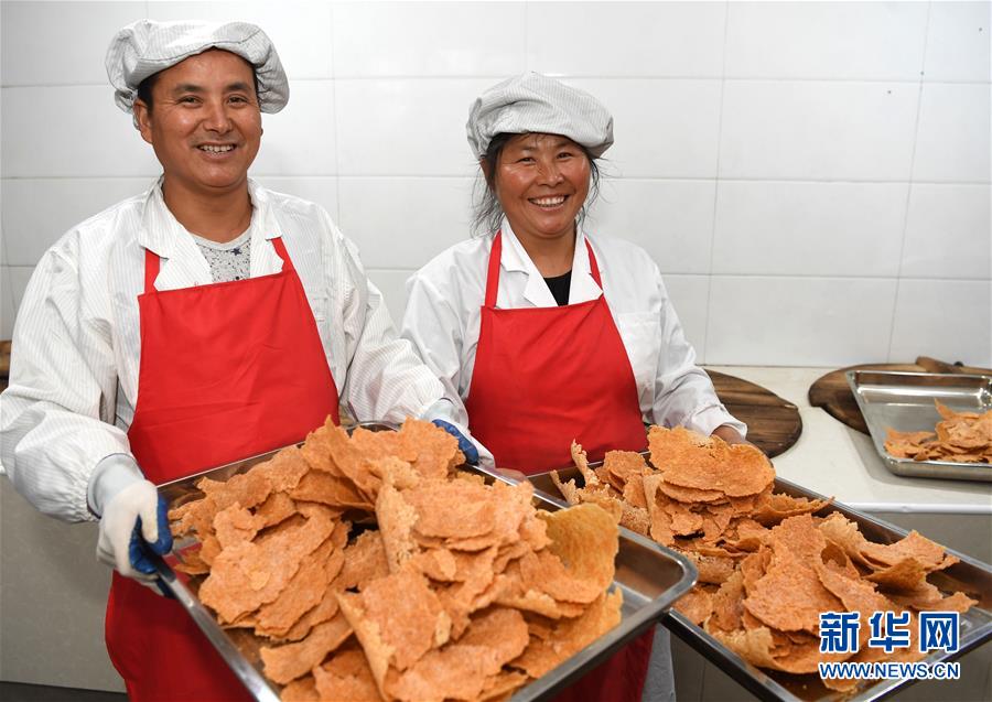 今年49歲的汪明祥和47歲的姚新花是安徽省涇縣黃村鎮(zhèn)沙元村的一對農(nóng)民夫妻。2013年,汪明祥突發(fā)疾病花光了家里的積蓄,并喪失了一定的勞動能力。2014年,汪明祥一家被確定為建檔立卡貧困戶。為了靠自己的雙手實現(xiàn)脫貧,汪明祥和妻子姚新花在家里開始生產(chǎn)手工鍋巴,雖然收入不高,但是經(jīng)濟狀況慢慢好轉起來,于2016年順利實現(xiàn)脫貧。脫貧后的夫妻倆開始琢磨如何進一步發(fā)展自家的手工鍋巴生意。今年,汪明祥和妻子姚新花利用當?shù)胤鲐毿☆~貸款和自籌資金創(chuàng)辦的強源鍋巴廠投產(chǎn)。由于口味地道,價格不高,汪明祥家的鍋巴受到市場的歡迎,平均每天生產(chǎn)鍋巴50余斤,日均銷售額400多元?!安坏炔豢?,甩窮帽,我們夫妻倆靠手藝脫了貧,也有信心實現(xiàn)致富?!蓖裘飨檎f。