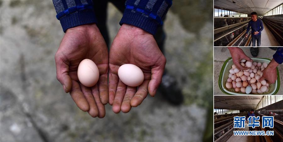 拼版照片:左圖為貧困戶李先強手捧養(yǎng)殖合作社生產(chǎn)的雞蛋(11月19日攝);右圖為李先強在雞舍里撿雞蛋(照片均攝于11月19日)。李先強是融水苗族自治縣香粉鄉(xiāng)香粉村的貧困戶,從2016年開始,他和15個貧困戶一起發(fā)展土雞養(yǎng)殖。目前合作社養(yǎng)有3000多只雞,年產(chǎn)雞蛋1萬多斤。 廣西融水苗族自治縣是國家扶貧工作重點縣,全縣“九山半水半分田”,生活生產(chǎn)環(huán)境較為惡劣,脫貧攻堅任務(wù)艱巨,目前還有7.68萬貧困人口。面對經(jīng)濟發(fā)展落后、貧困面廣且程度深的現(xiàn)狀,當(dāng)?shù)匕衙撠毠耘c創(chuàng)新產(chǎn)業(yè)扶持相結(jié)合,依托生態(tài)資源優(yōu)勢,實施“特色產(chǎn)業(yè)富民行動”,通過發(fā)展特色民族旅游、林下經(jīng)濟和特色養(yǎng)殖業(yè)等扶貧產(chǎn)業(yè),帶動貧困群眾依靠勤勞的雙手,拔窮根摘窮帽,實現(xiàn)脫貧致富。據(jù)了解,目前全縣貧困戶參與特色產(chǎn)業(yè)發(fā)展的有2.9萬戶,扶貧產(chǎn)業(yè)覆蓋率達95%。 新華社記者 黃孝邦 攝