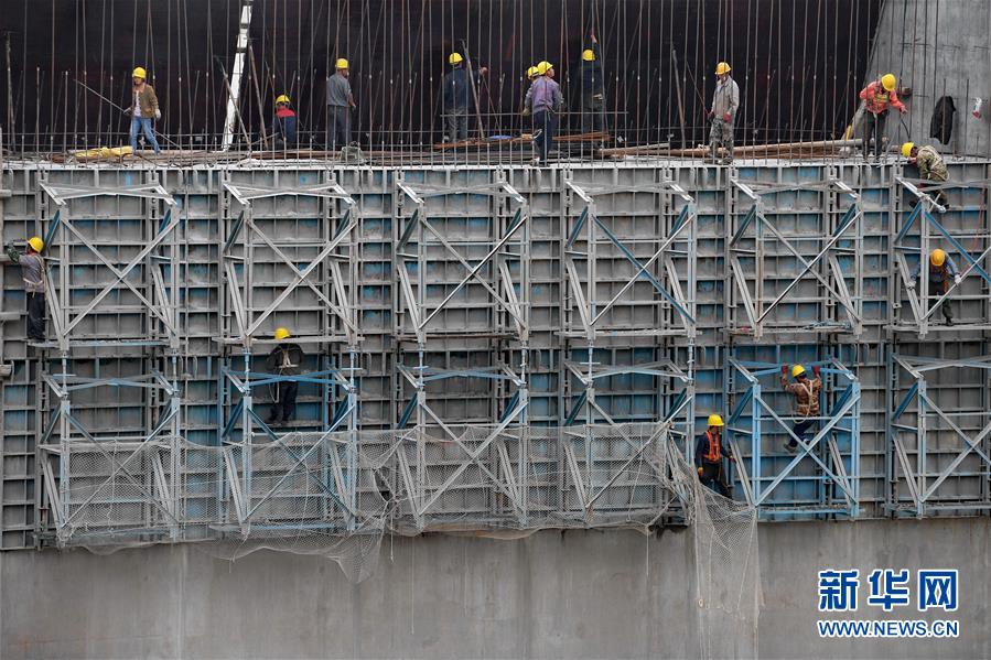 11月23日,建設(shè)者在福建閩江水口水電站壩下工程工地加緊施工。
