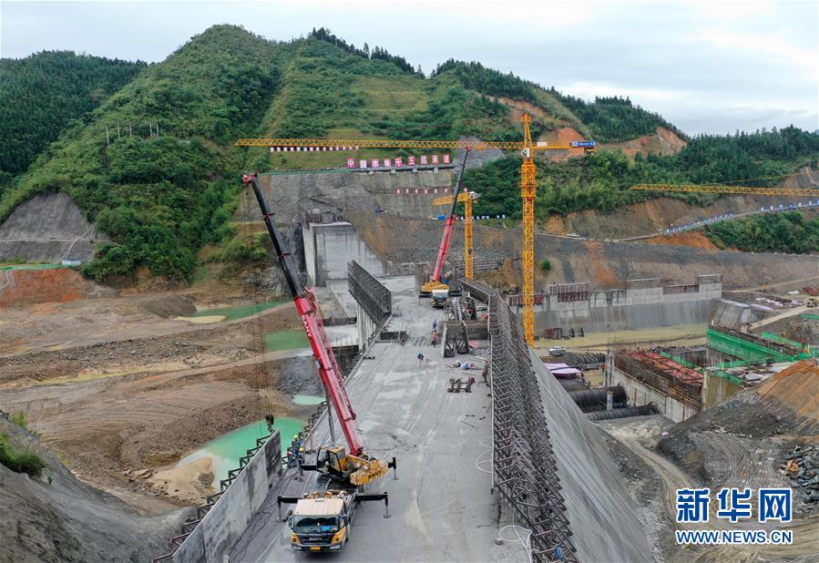 11月15日無人機拍攝的廣西落久水利樞紐工程施工現(xiàn)場。目前,廣西柳江防洪控制性工程落久水利樞紐工程各項建設進展順利,主壩工程項目已完成總體建設的60%。落久水利樞紐工程位于廣西柳江流域支流貝江下游,是一座以防洪為主,兼顧灌溉、供水、發(fā)電和航運等任務的綜合性水利樞紐工程。新華社記者 周華 攝