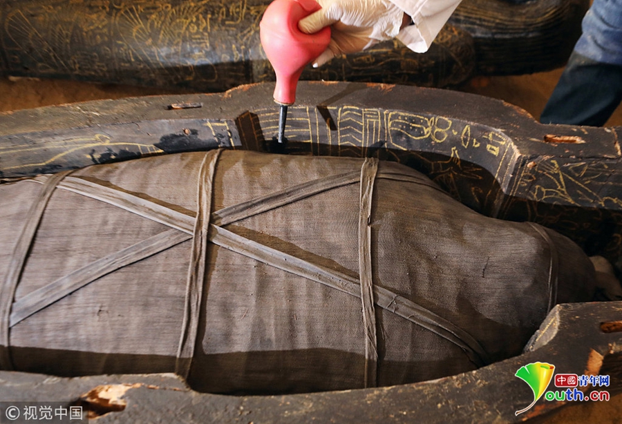 當(dāng)?shù)貢r間2018年11月24日,埃及盧克索,考古學(xué)家在當(dāng)?shù)匕l(fā)掘出一處墓穴,在其中發(fā)現(xiàn)石棺、木乃伊等文物,時間可追溯至公元前4-7世紀(jì)。