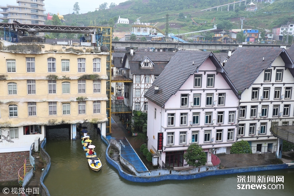 2018年6月20日,重慶涪陵,紅酒小鎮(zhèn)人工運(yùn)河全長近5公里,2009年開建,先期依梨香溪岸線而建,后期隨著景區(qū)的發(fā)展,運(yùn)河逐漸拓展為高架橋的“空中運(yùn)河”,穿樓而過的“室內(nèi)運(yùn)河”,穿水上樂園而過的“水中運(yùn)河”。為確保一個水平面,運(yùn)河見房穿洞,過路搭橋,游客乘坐觀光船或蕩舟其中成為一道獨(dú)特的風(fēng)景線。隨著8D魔幻重慶的不斷走紅,該景區(qū)的網(wǎng)紅運(yùn)河正受到游客的喜愛與“打卡”。