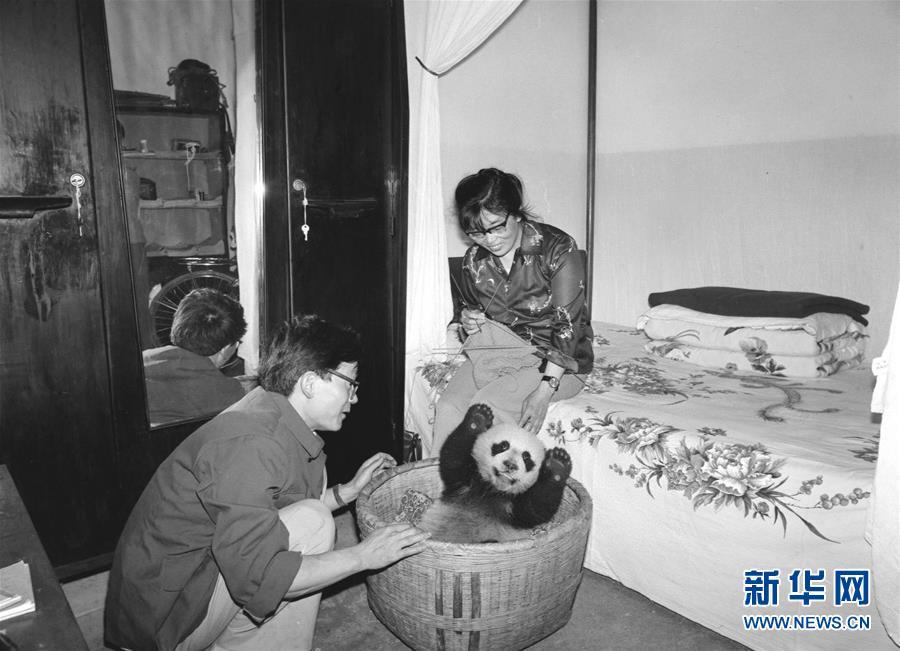 新華社記者金勖琪1984年拍攝的四川平武縣林業(yè)局的助理工程師鐘肇敏(左)一家把一頭受病餓威脅的熊貓幼仔“龍龍”收留在家里精心喂養(yǎng)。大熊貓,古老的物種,世界級(jí)“萌寵”。有一位84歲的老人,四十年前曾身挎相機(jī)與熊貓親密接觸六年多,公開(kāi)發(fā)表了一千多張熊貓照片,把熊貓介紹給全球的讀者,被國(guó)內(nèi)外的朋友親切地稱(chēng)為“熊貓小姐”。她就是金勖琪,新華社第一代熊貓攝影師。新華社記者 張超群 攝