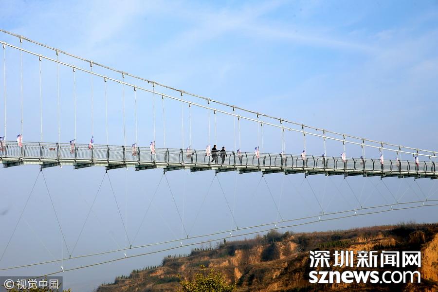 深圳新聞網(wǎng)訊 河南三門峽,位于陜州地坑院景區(qū)玻璃天橋。該項目橋梁總投資2600萬元,全長368米,寬3米,高108米,是目前河南省內(nèi)最長的玻璃天橋,還將陸續(xù)對外開放夜景效果、聲光效果以及更多的體驗效果,逐步打造成整個豫西地區(qū)乃至全省的旅游打卡新地標(biāo)。