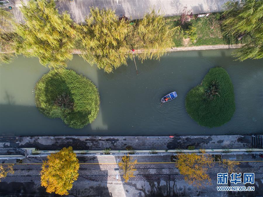 11月28日,長(zhǎng)興縣虹星橋鎮(zhèn)港口村東港內(nèi),工作人員在打撈水面漂浮物(無人機(jī)拍攝)。東港全長(zhǎng)1500米,環(huán)繞港口新村。2012年,新村建成后,港口村通過加固河岸、清理河道、種植浮草等方式對(duì)東港進(jìn)行生態(tài)治理,并由該村黨總支書記孫根法擔(dān)任河長(zhǎng),定期開展巡查,引導(dǎo)村民自覺維護(hù)河道整潔。 新華社記者 徐昱 攝