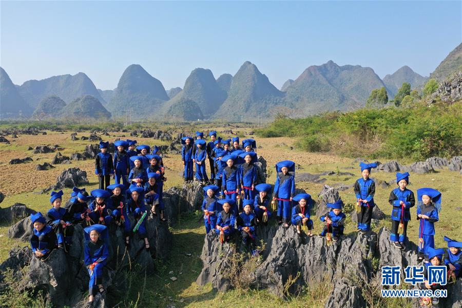 廣西百色靖西市安德鎮(zhèn)中心小學(xué)的孩子們在排練山歌(11月28日無人機(jī)拍攝)。 新華社記者 周華攝