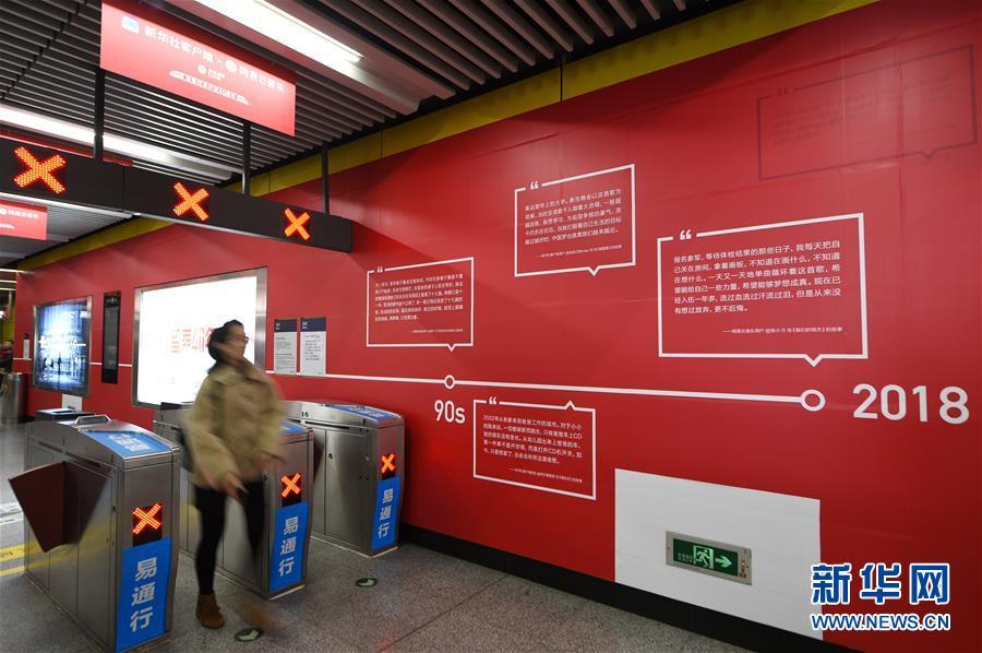 12月3日,在北京地鐵4號(hào)線宣武門站,乘客經(jīng)過(guò)音樂(lè)主題影像展展出的音樂(lè)故事。 在慶祝改革開放40周年之際,當(dāng)日,新華社客戶端聯(lián)合網(wǎng)易云音樂(lè)在北京地鐵4號(hào)線宣武門站和杭州地鐵1號(hào)線定安路站,舉辦主題為“留聲40年:那些改變你我的故事”音樂(lè)主題影像展。同時(shí),兩列滿載著“音樂(lè)故事”的留聲專列也開始在北京地鐵4號(hào)線、大興線及杭州地鐵1號(hào)線上開出。 音樂(lè)主題影像展通過(guò)中國(guó)照片檔案館珍貴的歷史照片,展示40年來(lái)中國(guó)音樂(lè)的發(fā)展歷程以及音樂(lè)給人們生活帶來(lái)的改變。 新華社記者 鞠煥宗 攝