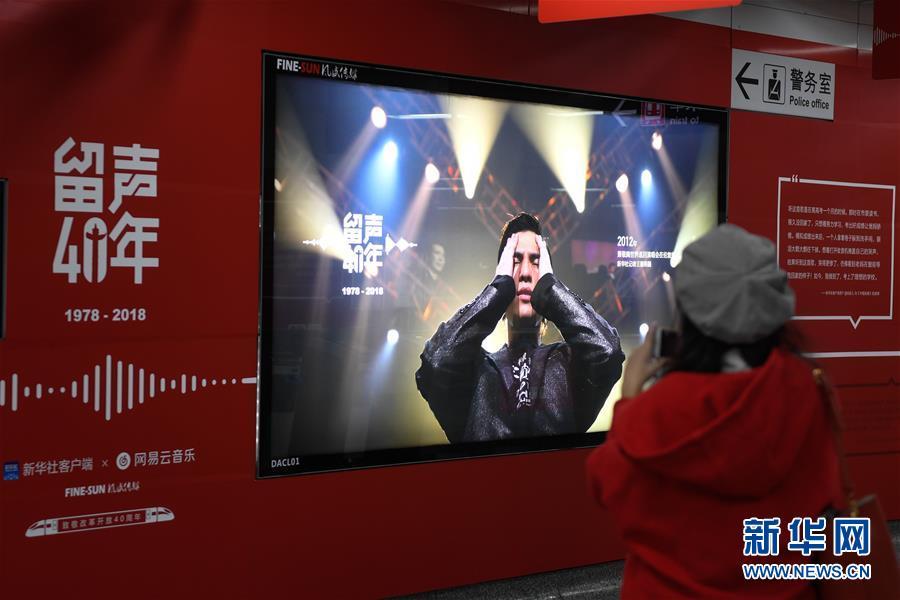 12月3日,在北京地鐵4號(hào)線宣武門站,一名乘客觀看音樂(lè)主題影像展展出的海報(bào)。 在慶祝改革開放40周年之際,當(dāng)日,新華社客戶端聯(lián)合網(wǎng)易云音樂(lè)在北京地鐵4號(hào)線宣武門站和杭州地鐵1號(hào)線定安路站,舉辦主題為“留聲40年:那些改變你我的故事”音樂(lè)主題影像展。同時(shí),兩列滿載著“音樂(lè)故事”的留聲專列也開始在北京地鐵4號(hào)線、大興線及杭州地鐵1號(hào)線上開出。 音樂(lè)主題影像展通過(guò)中國(guó)照片檔案館珍貴的歷史照片,展示40年來(lái)中國(guó)音樂(lè)的發(fā)展歷程以及音樂(lè)給人們生活帶來(lái)的改變。 新華社記者 鞠煥宗 攝