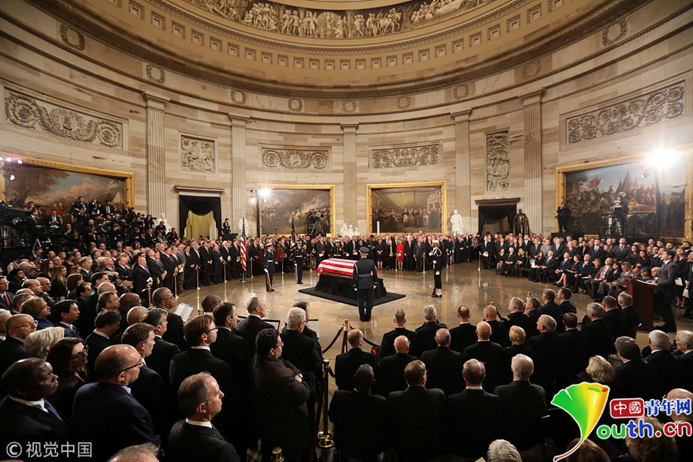 布什家族成員小布什、副總統(tǒng)彭斯等多位政界人士出席儀式。
