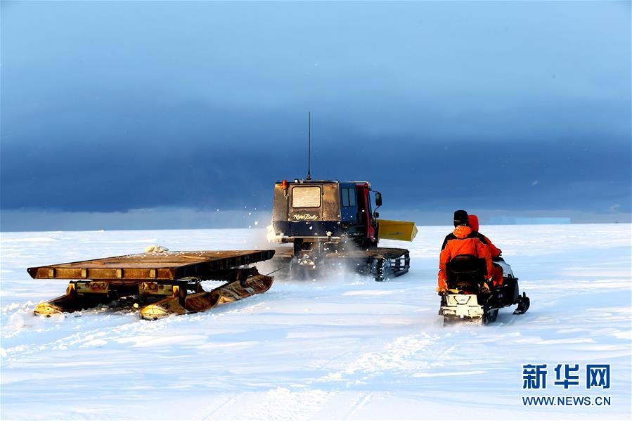 修路小組成員用雪地車裝備的鏟斗推平積雪(12月1日攝)。 搭載中國第35次南極科考隊(duì)的“雪龍”號極地考察船日前到達(dá)距離中山站44公里處的陸緣冰區(qū),準(zhǔn)備迎來本次南極科考首場攻堅(jiān)戰(zhàn)——物資卸運(yùn)。一支探冰小組隨即展開海冰探路,以期盡快打通從“雪龍”號到中山站的冰上運(yùn)輸線,盡早啟動冰上運(yùn)貨。 新華社記者 劉詩平 攝