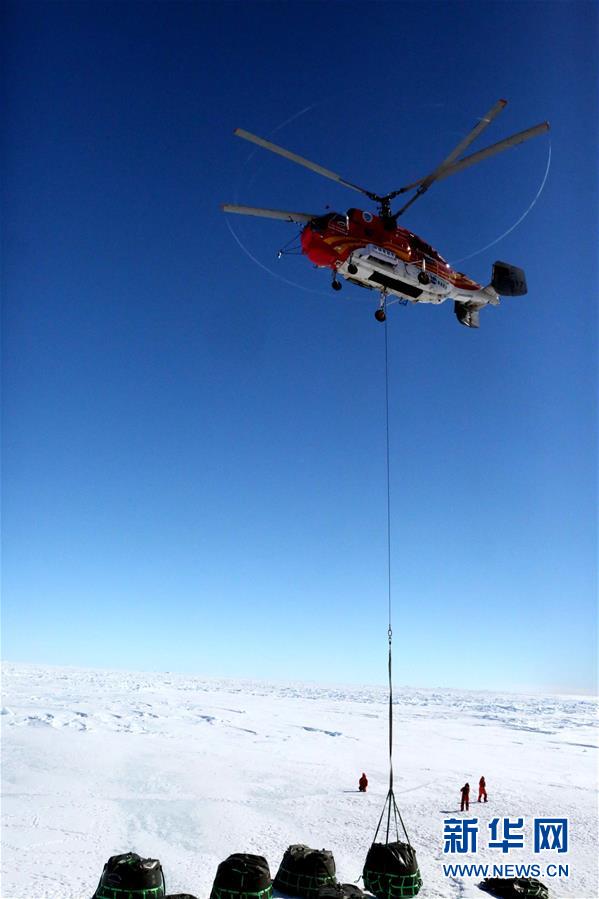 直升機(jī)在進(jìn)行吊運(yùn)作業(yè)(12月3日攝)。 新華社記者 劉詩平攝