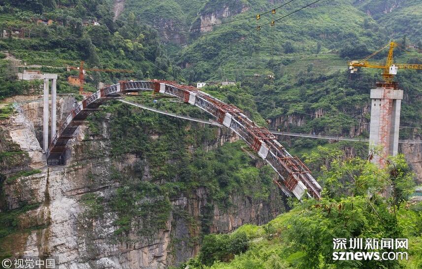 2018年5月30日,云南昭通,鸚哥大橋完成最后一段35米引橋現(xiàn)澆箱梁作業(yè),標志著“鸚哥溜索改橋”主體工程完工,進入最后階段的橋面鋪裝和防護欄施工,預計6月底建成通車。