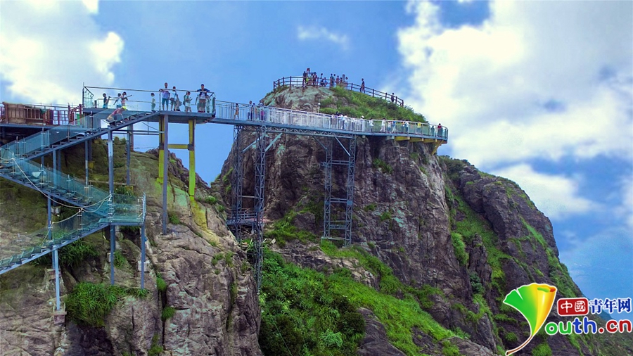 金子山素以天梯而著名,原來(lái)的通天天梯是用石頭建成的。而最高峰的天梯則用玻璃建成的,是國(guó)內(nèi)首個(gè)玻璃天梯,也是全國(guó)首個(gè)樓梯型的玻璃旅游產(chǎn)品。