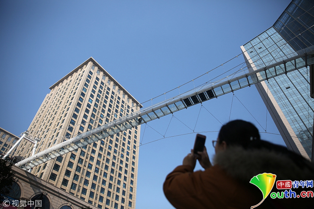 這座玻璃吊橋位于石家莊南二環(huán)附近,橋體橫跨塔通大街,長(zhǎng)100米,高30米,。橋面由52塊特質(zhì)玻璃構(gòu)成,其中4塊為特效玻璃,游客腳踩上去就會(huì)發(fā)出玻璃破裂的聲音。