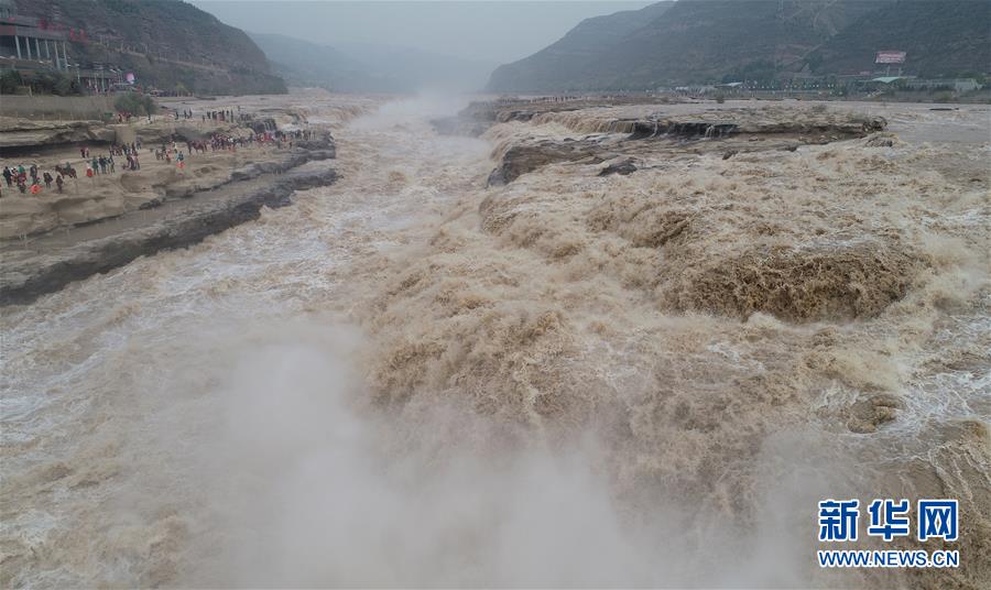 這是10月17日無人機(jī)拍攝的黃河壺口瀑布。新華社記者邵瑞攝