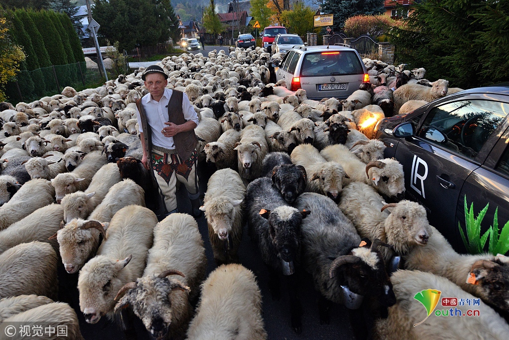 牧羊人趕著羊群走下波蘭南部喀爾巴阡山,他們要走20英里才能回到農(nóng)場。