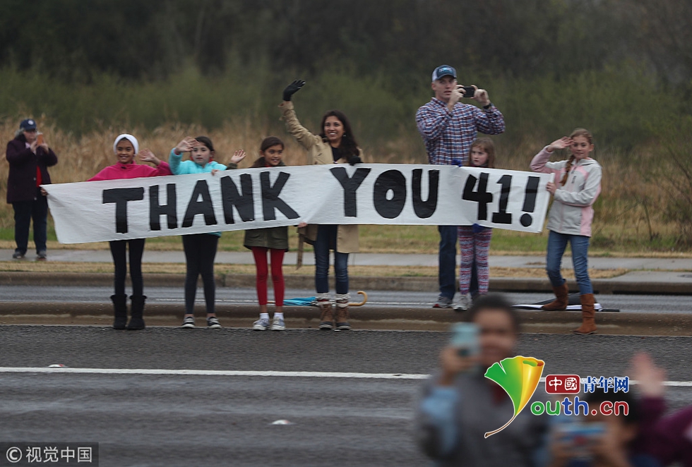 當(dāng)?shù)貢r間2018年12月6日,美國德州,美國前總統(tǒng)老布什將落葬德州農(nóng)機大學(xué)布什總統(tǒng)圖書館和博物館后面的布什家族墓地,與他半年前去世的妻子芭芭拉以及早夭的女兒蘿賓葬在一起。當(dāng)天,一輛葬禮專列將載著老布什的棺槨及其親朋,從休斯敦郊區(qū)開往老布什的最后安葬之地、德州農(nóng)機大學(xué)。這列火車的第六節(jié)車廂側(cè)面是透明的,人們可以在鐵軌旁看到老布什蓋著國旗的靈樞。圖片作者:Joe Raedle/視覺中國