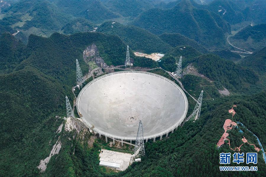 這是9月10日無人機(jī)拍攝的被譽(yù)為“中國天眼”的500米口徑球面射電望遠(yuǎn)鏡(FAST)。