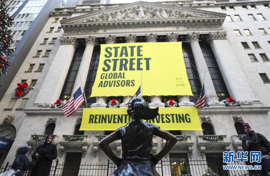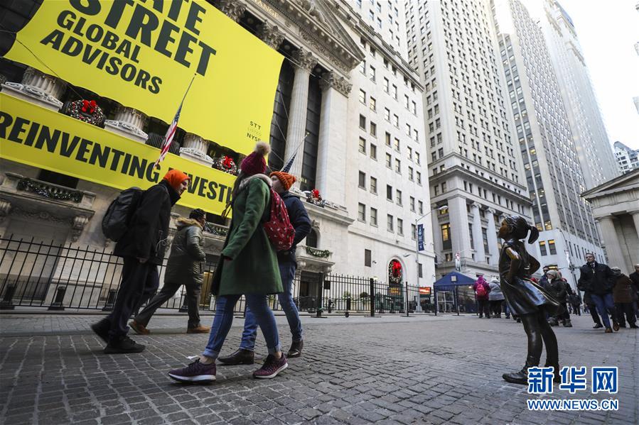 12月10日,在美國(guó)紐約,人們從紐約證券交易所前的“無(wú)畏女孩”銅像旁走過(guò)。 新華社記者 王迎 攝
