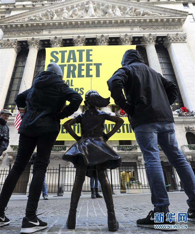 這是12月10日在美國(guó)紐約證券交易所前拍攝的“無(wú)畏女孩”銅像。 新華社記者 王迎 攝