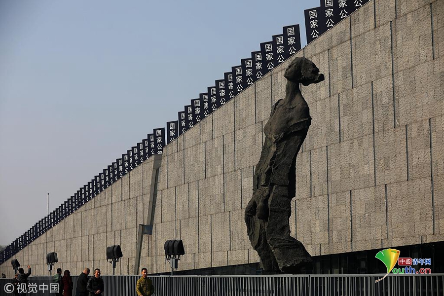 2018年12月12日,民眾在侵華日軍南京大屠殺遇難同胞紀念館外參觀。圖片作者:泱波