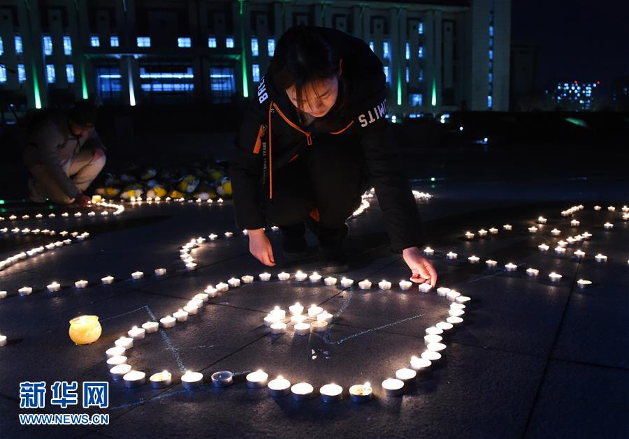 12月12日,學生將組成紀念圖案的白燭擺放整齊。 當晚,南京東南大學學生在校園舉行“燭光祭”活動,悼念南京大屠殺遇難同胞。學生們點燃白燭,獻花默哀,表達哀思。 新華社記者 孫參 攝
